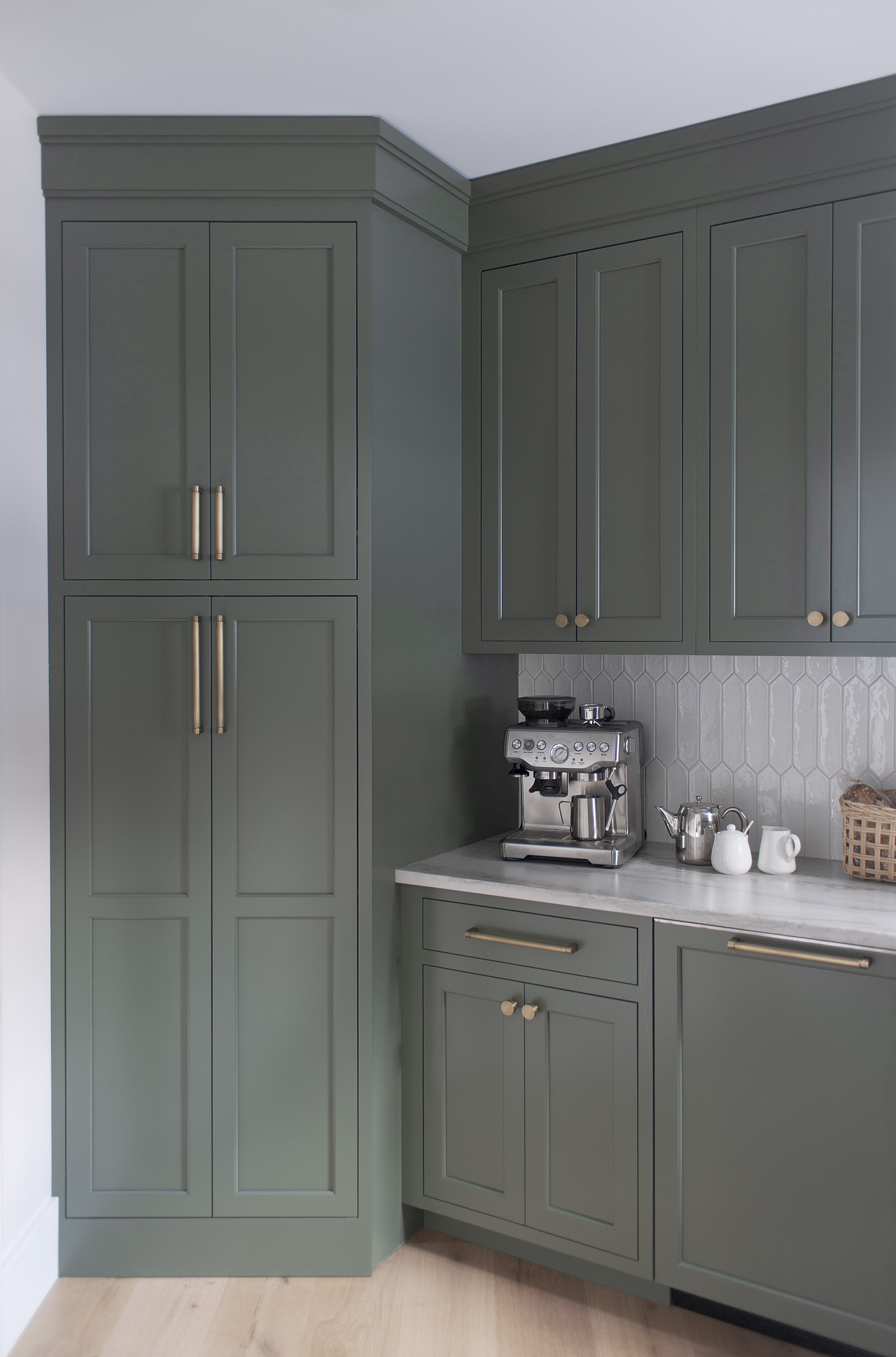 Pantry from Crown Select Wood: Maple; Paint Color: Rosemary; Door Style: Cornish; Face Frame: Square Inset